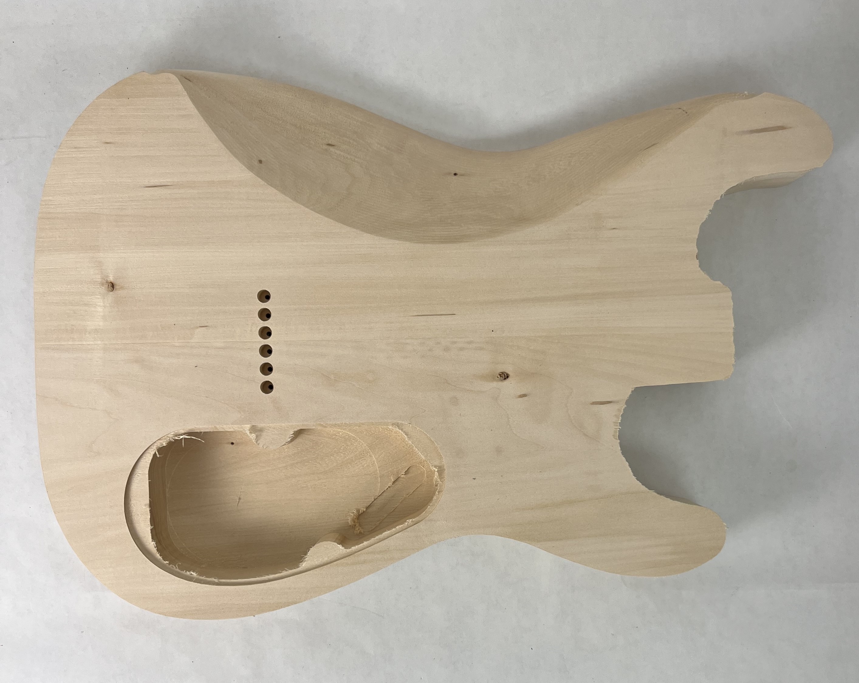 This lefty is a 2 piece basswood piece with rear control route and set up for hardtail bridge