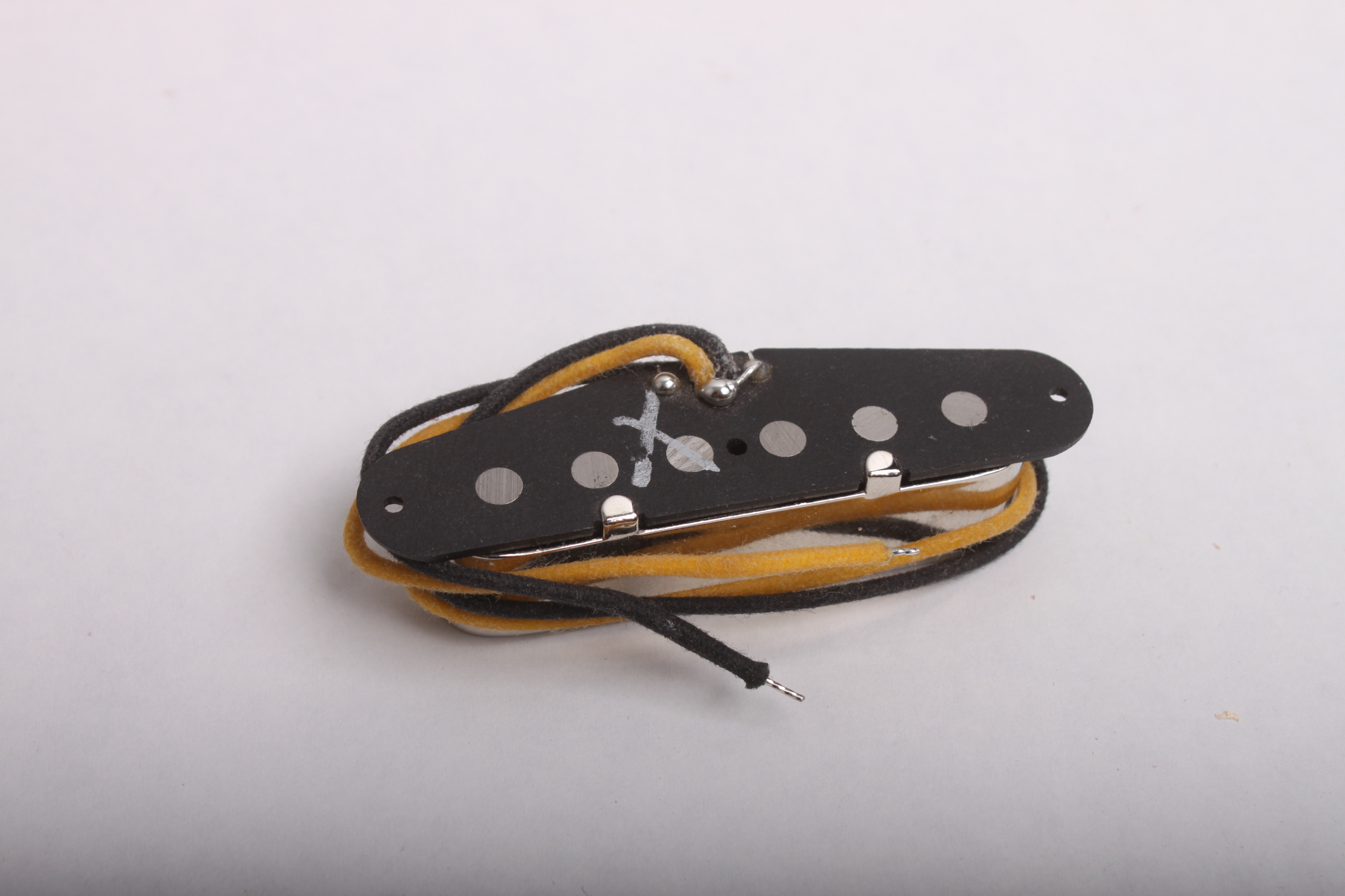 The neck pickup has a nickel silver cover. The bridge pickup has a vintage correct copper base plate. RWRP when combined for hum canceling. Vintage cloth lead wires. Vacuum wax potted.